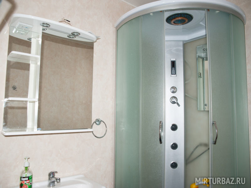 1 этаж: кухня, полностью оборудованная для самостоятельного приготовления пищи (холодильник, газовая плита, микроволновка, наборы посуды), туалетная комната (душевая кабина, раковина для умывания, санузел), холл-столовая, гостиный зал с ТВ и караоке, 2 просторные спальни.