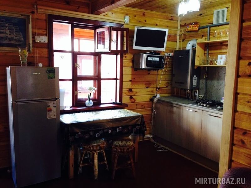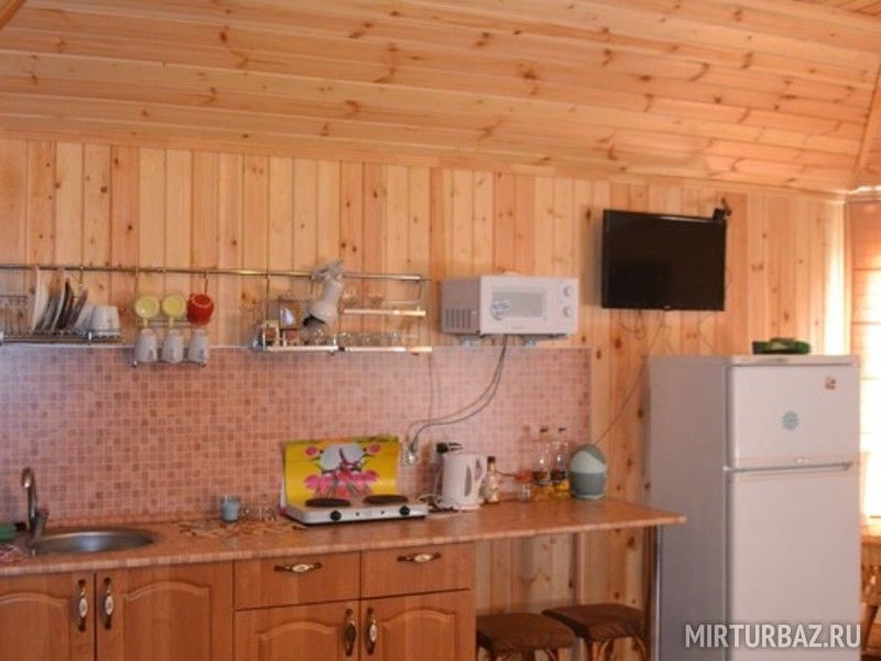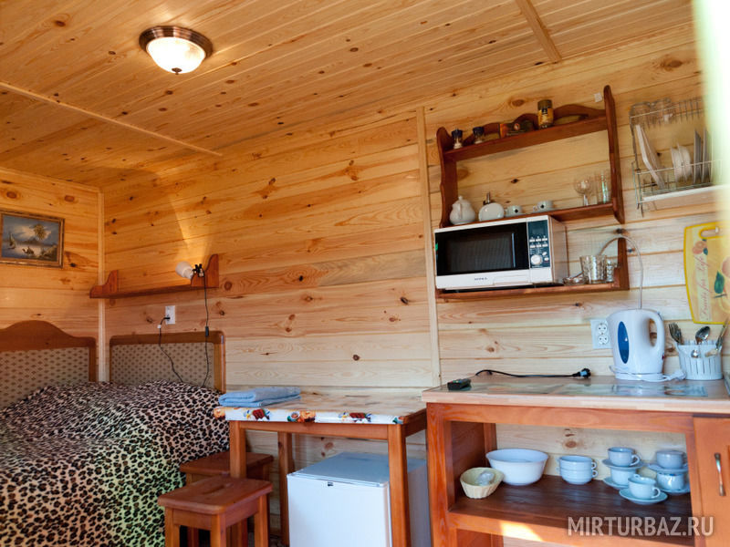 1 этаж: крытая веранда, гостиная зала с ТВ, кухня, полностью оборудованная для самостоятельного приготовления пищи (холодильник, газовая плита, микроволновка, набор посуды), туалетная комната (душевая кабина, раковина для умывания, санузел), спальная комната.