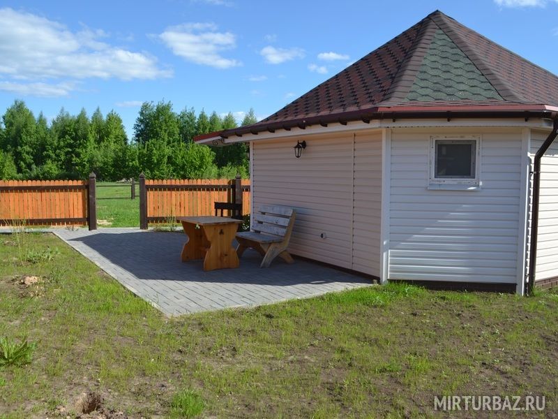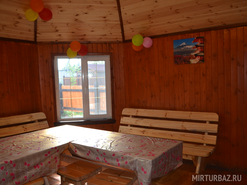Вмещает до 20 человек. На территории отапливаемое помещение с мини-кухней и столами для приема пищи, туалет. На прилегающей территории имеется мангал, место для пикника.