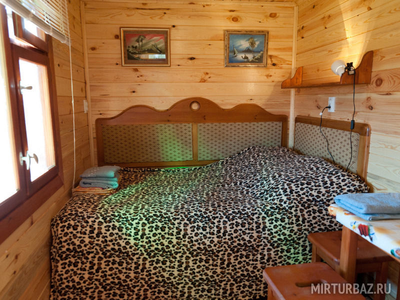 Внутри домика имеется односпальная и 1,5-спальная кровати.