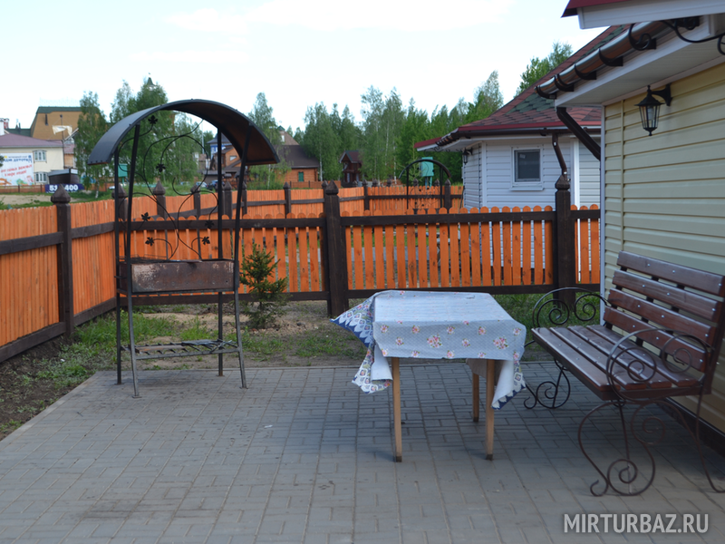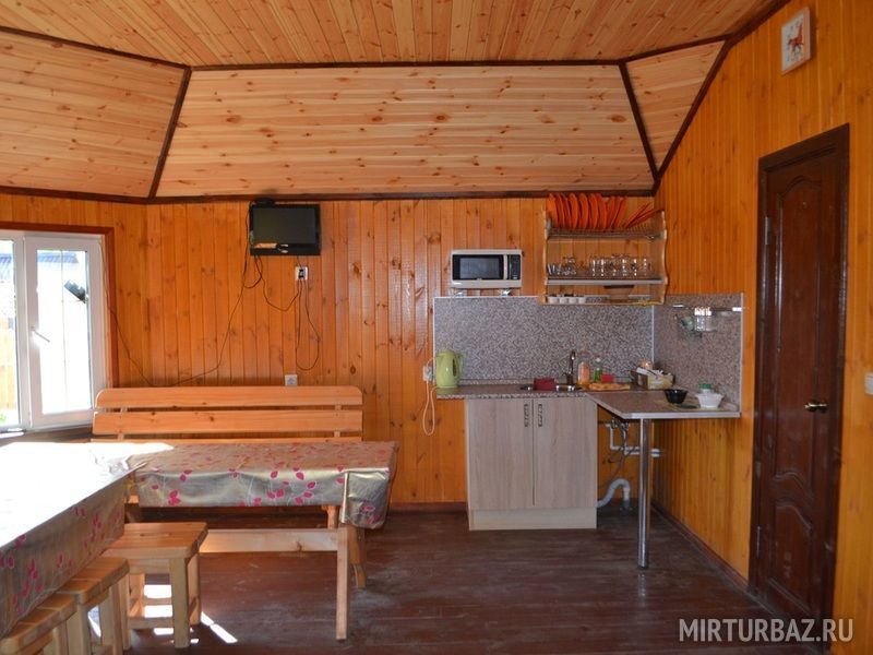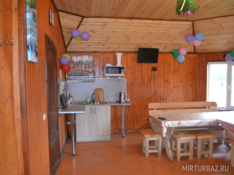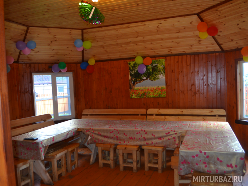 Вмещает до 40 человек. К территории подведены вода, электричество, имеется мангал, крытая площадка с навесом для пикника: столы и лавки. На территории имеется домик №4. Включает 2 спальни с TV, мини-кухню (холодильник, микроволновка, чайник), санузел. При необходимости можно его снять: