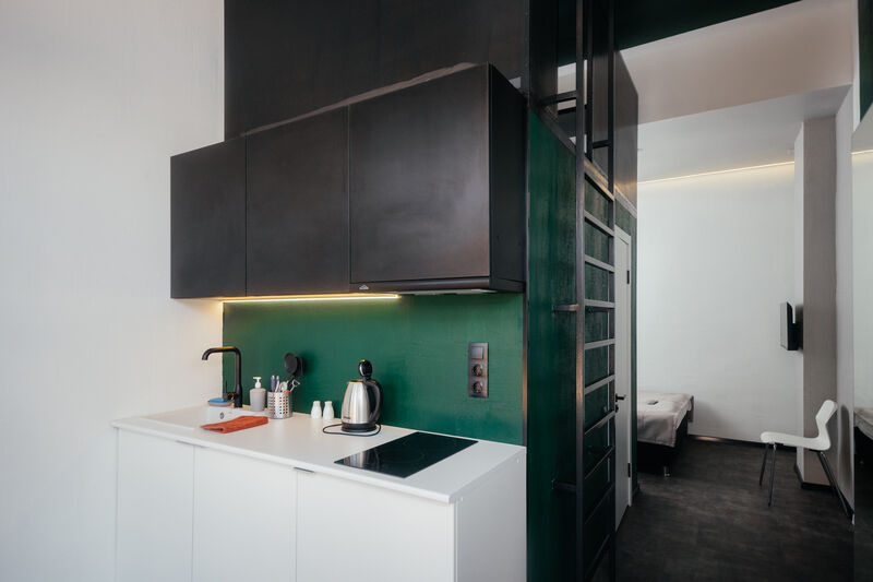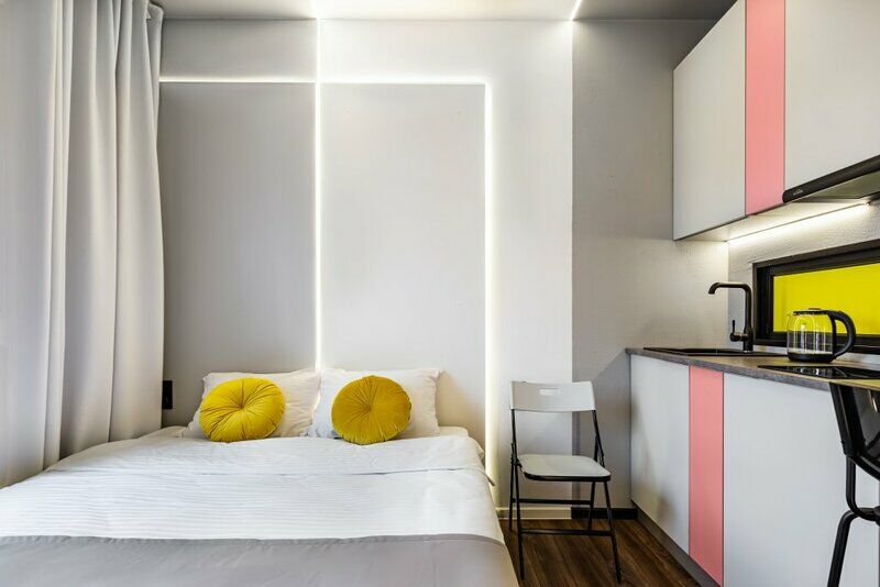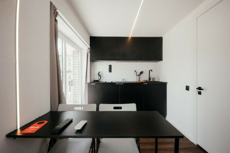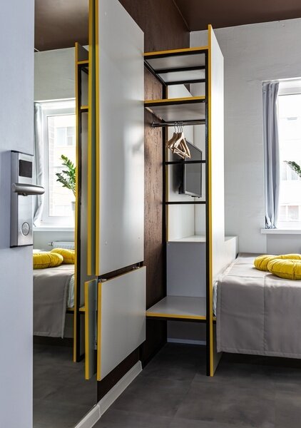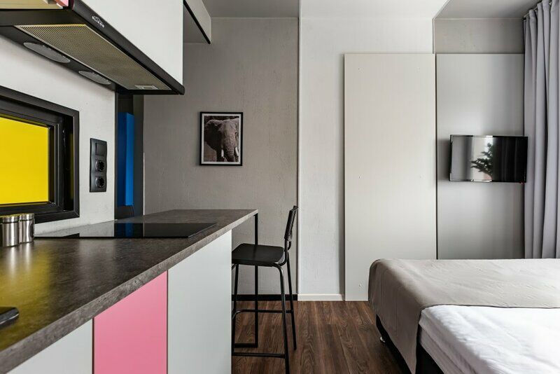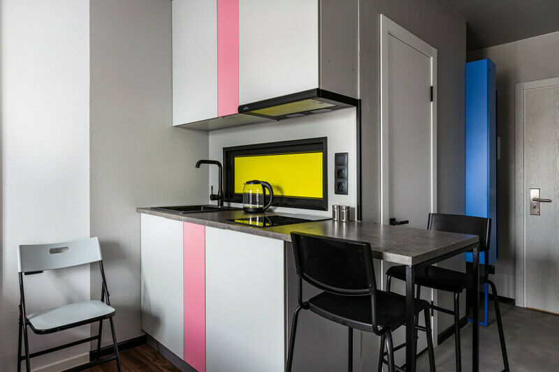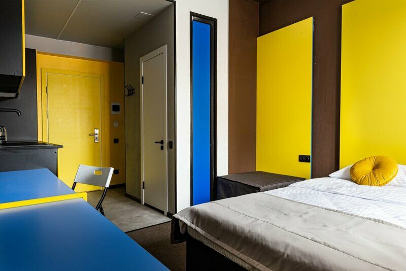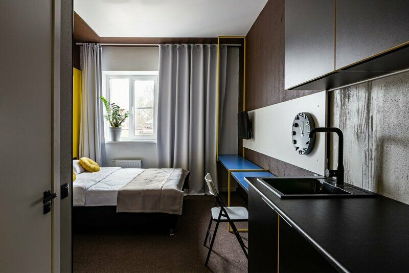 Корпус отеля разместился в тихом спальном районе города. В распоряжении гостей стильные номера разных категорий, в том числе есть двухуровневые номера с отдельным входом и номера-студии с мини-кухней. В каждом номере независимо от категории имеется собственная ванная комната с душем, телевизор и беспроводной интернет.