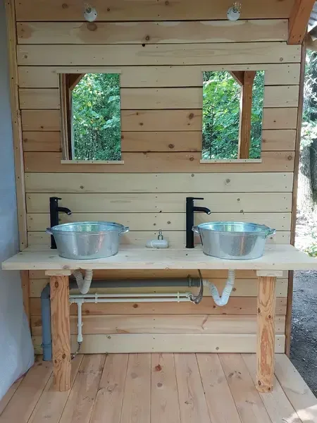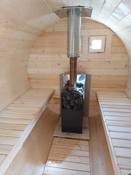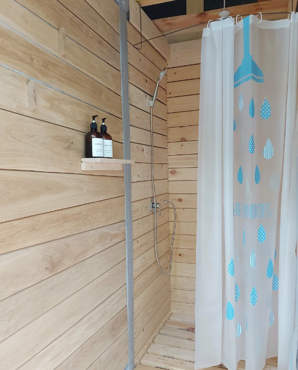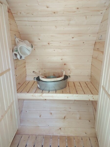На территории глэмпинга находится баня-бочка с зоной отдыха, общая кухня, санитарный блок с душем и туалетом, костровая зона, а также качели и песчаный пляж неподалёку.