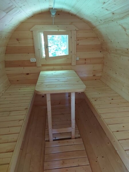 Баня для небольшой компании (до 6-х человек). 3 отделения: раздевалка, парилка и комната для отдыха со столом и лавками. Сеанс - 2 часа, доп.час + 1000 ₽. Веники для парения - 500 ₽.