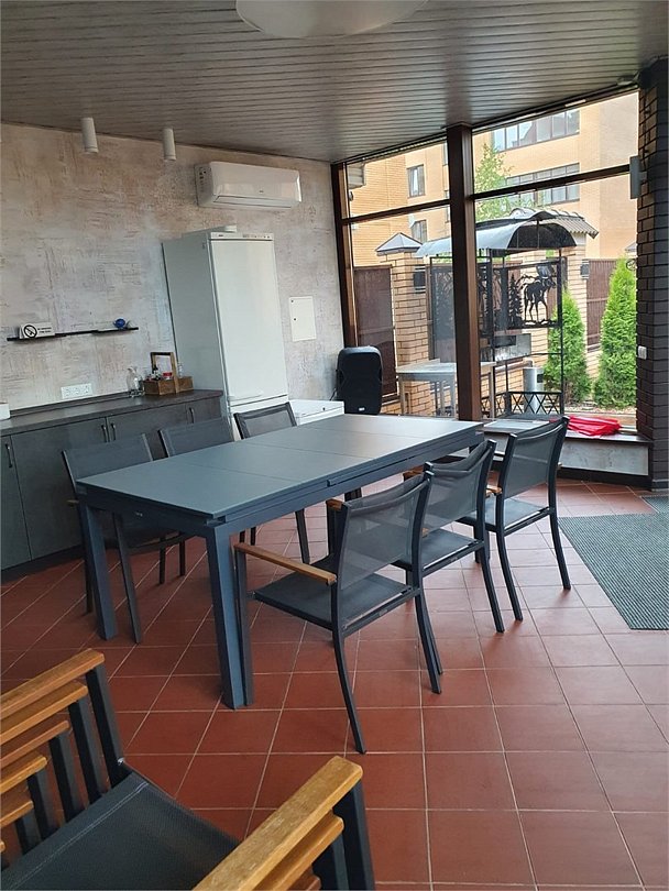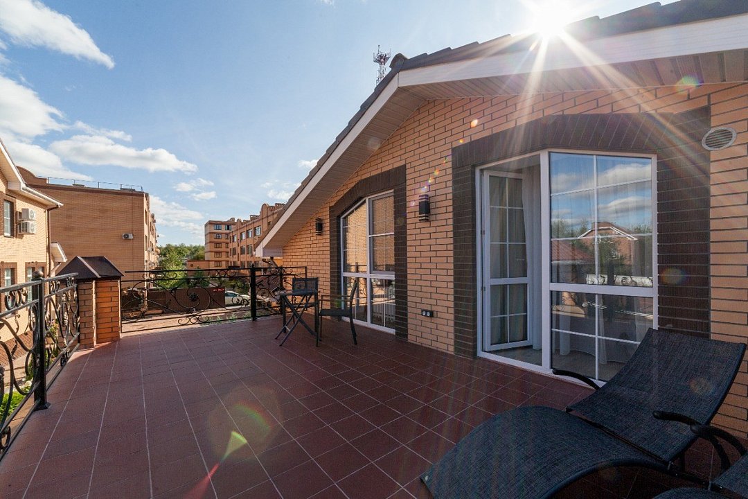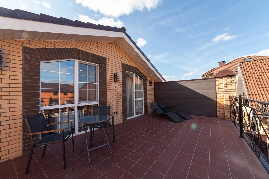 Wi-Fi, холодильник, кондиционер, фен, электронные замки, микроволновая печь, теплый пол, халаты, банные полотенца, тапочки, косметические средства, терраса, двуспальная кровать, шкаф для одежды, вешалки, обеденный стол, зеркало, унитаз, раковина, отдельный вход в номер, душ, вид во двор, стул, туалетные средства, цифровое тв, диван-кровать, телевизор со Smart TVВ гостиничном номере