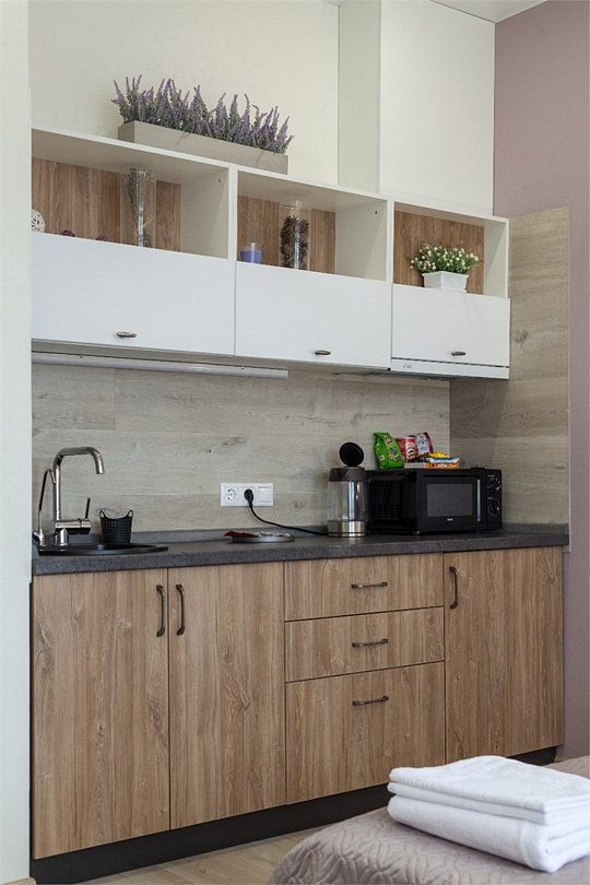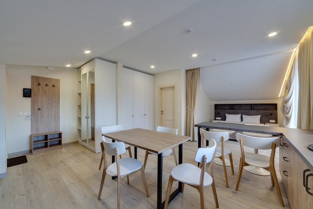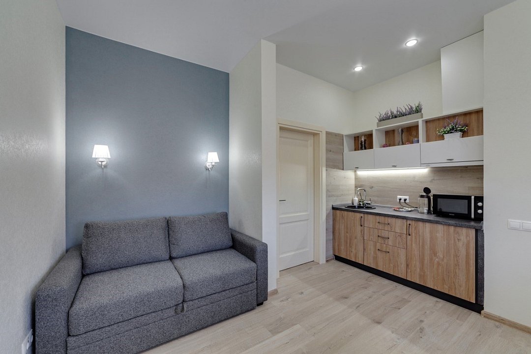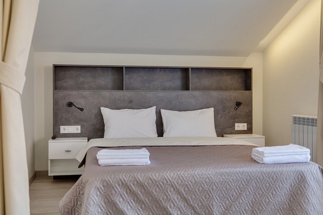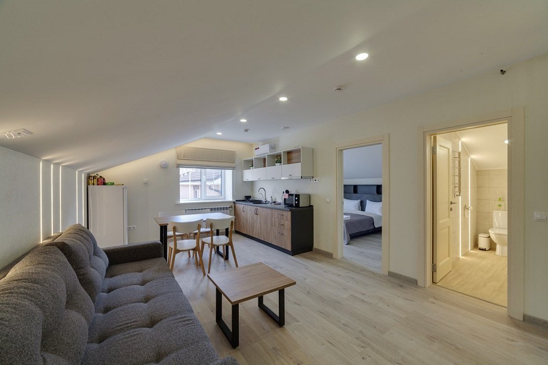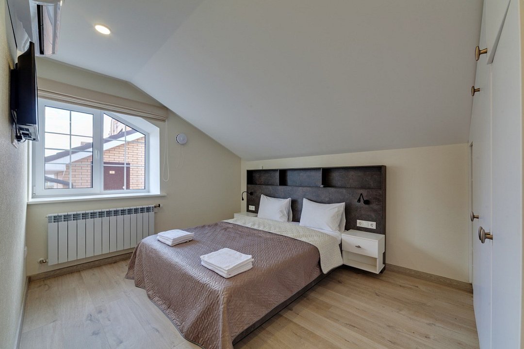 ⁃ двуспальная кровать ⁃ туалетная комната с душем ⁃ мини-кухня ⁃ обеденный стол ⁃ телевизор ⁃ кондиционер ⁃ номер подключён к системе «умный дом»Услуги и удобства