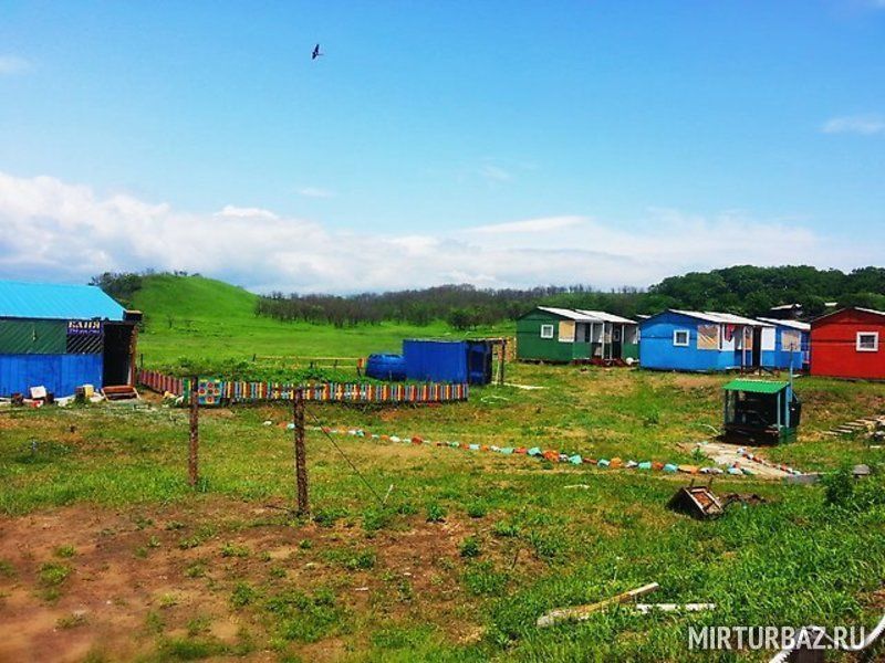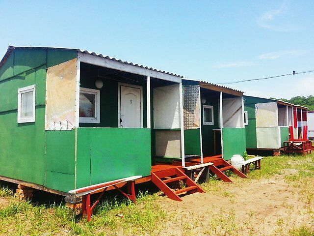В каждом домике: односпальные, двуспальные кровати с постельными принадлежностями, стол, стулья, вешалка, газовая мини-плитка, чайник, необходимый набор посуды. Санузел на улице.