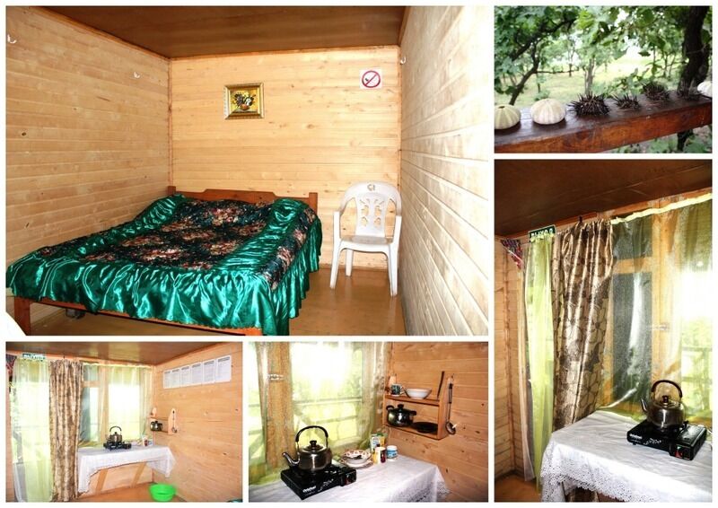 Одна двуспальная или две полуторные кровати , стол, 2 стула, полочки, вешалка для одежды, чайник, таз. Предоставляется: постельное белье, одеяла, подушки, кухонные принадлежности (кружки, тарелки, вилки, ложки, кастрюля, половник, доска разделочная) плита газовая (в прокат). В номерах есть розетки.