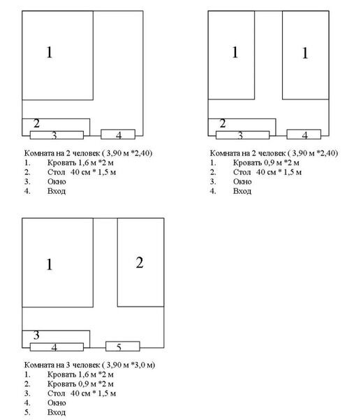 Две полуторные кровати и две полуторные кровати второго яруса, стол,
