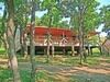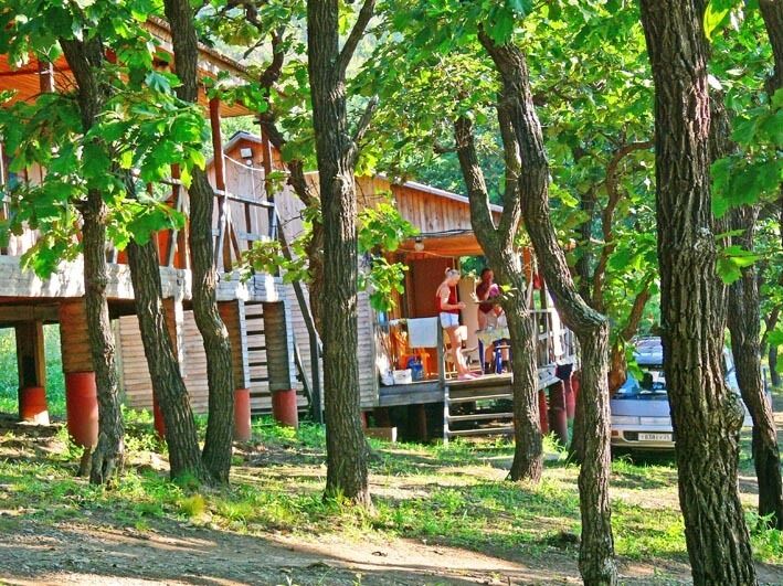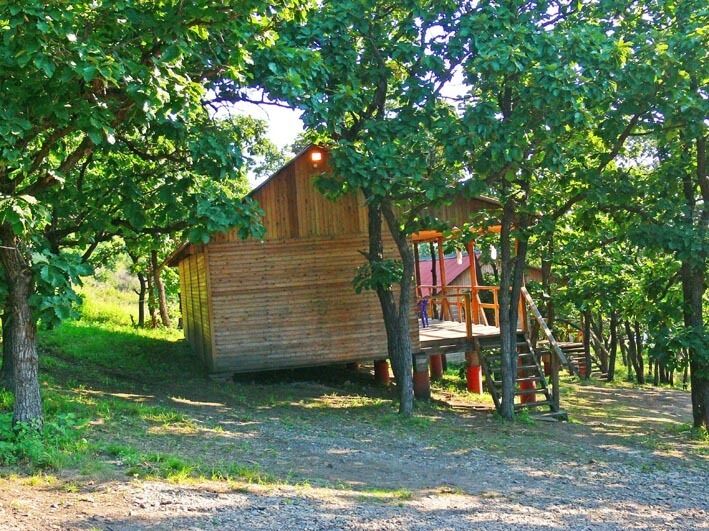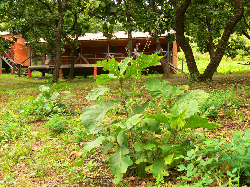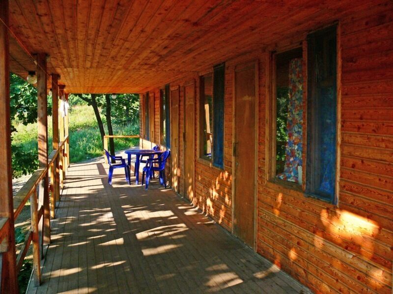 Всего на базе расположено 6 корпусов, построенных из дерева – берёзы и липы, в каждом из них имеется по 5 номеров, рассчитанных на 2-4 гостей. Автостоянка здесь бесплатная, есть летние и горячие души, подача воды и электричества – бесперебойная. Питание самостоятельное.