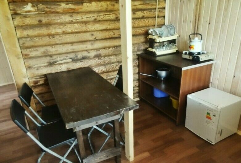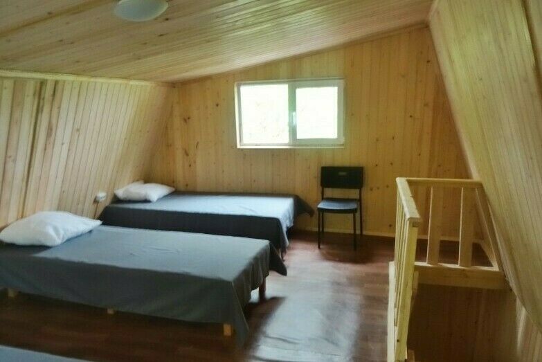 Для проживания на базе администрация подготовила деревянные домики, в которых недавно был произведен капитальный ремонт. Домики снабженные всем необходимым: холодильником, газовой плитой, посудой. По Вашему желанию есть возможность заменить односпальные кровати на двухспальные. Туалет и душ находятся в санитарном блоке.