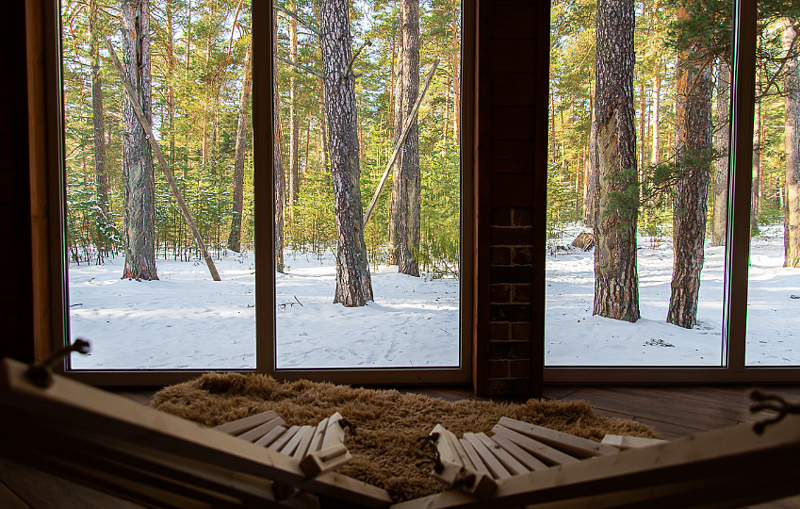 - каминная/кальянная с панорамными окнами и видом на лес;