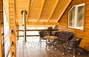 Это большой и уютный дом, в котором с удобством разместится большая компания. Внутри дома два санузла, кухня с современным оборудованием, гостиная с мощной аудиосистемой и караоке, каминная/кальянная с панорамными окнами, а также терраса с большим столом и лавочками, с которой можно любоваться окружающей природой. База находится на границе национального парка Мещерский.