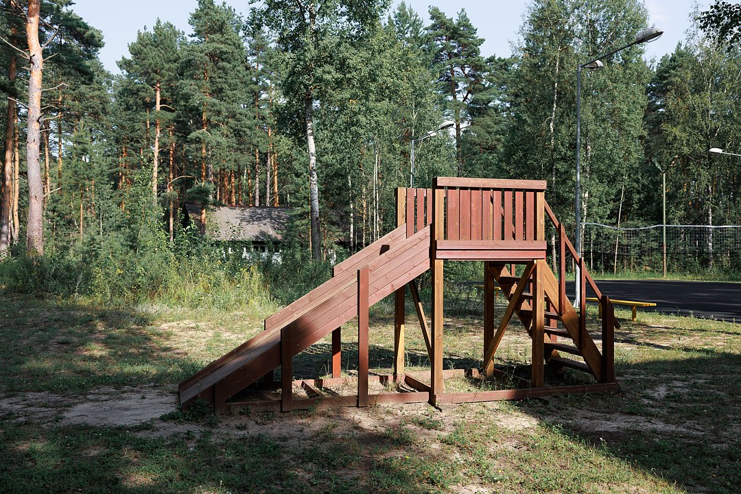 На территории базы имеются волейбольная и баскетбольная площадки.