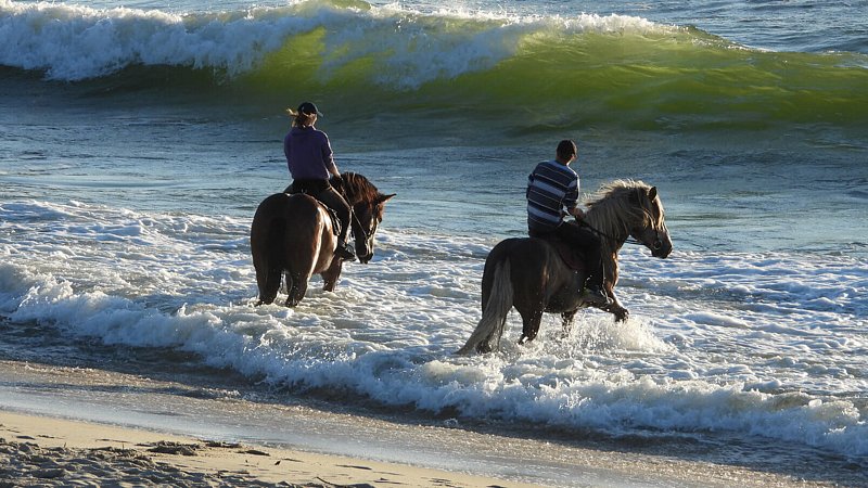Для более уверенных наездников или тех, кто не боится сразу поехать верхом, предлагается множество живописных маршрутов как со стороны моря, так и со стороны залива.