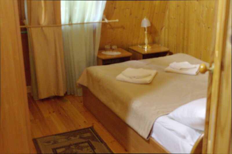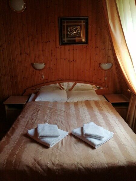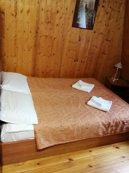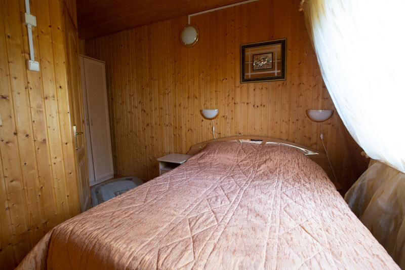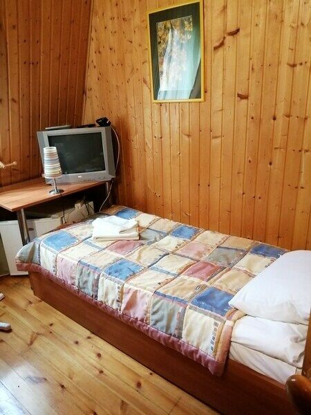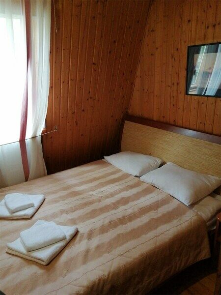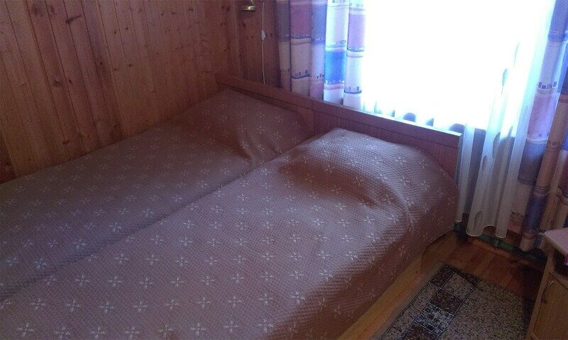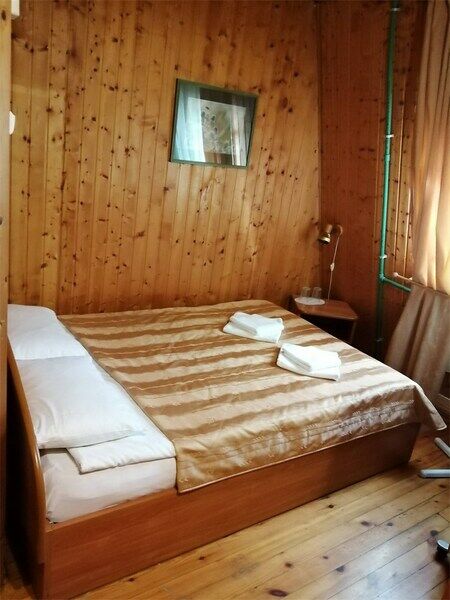 Одна двуспальная , шкаф, тумбочка, столик, стул, душ и туалет в номере. Мыльные принадлежности, полотенца. Можно поставить в некоторые номера дополнительное место в виде раскладушки (платно. 1000 руб/сутки),ставится только на ночь из-за небольшого размера комнаты.