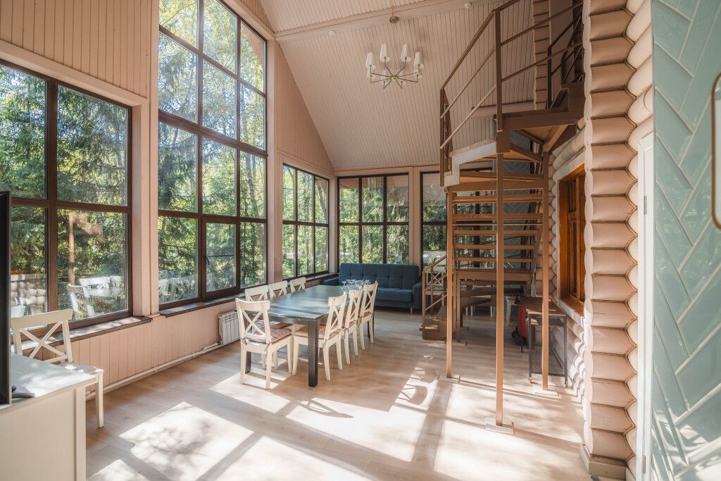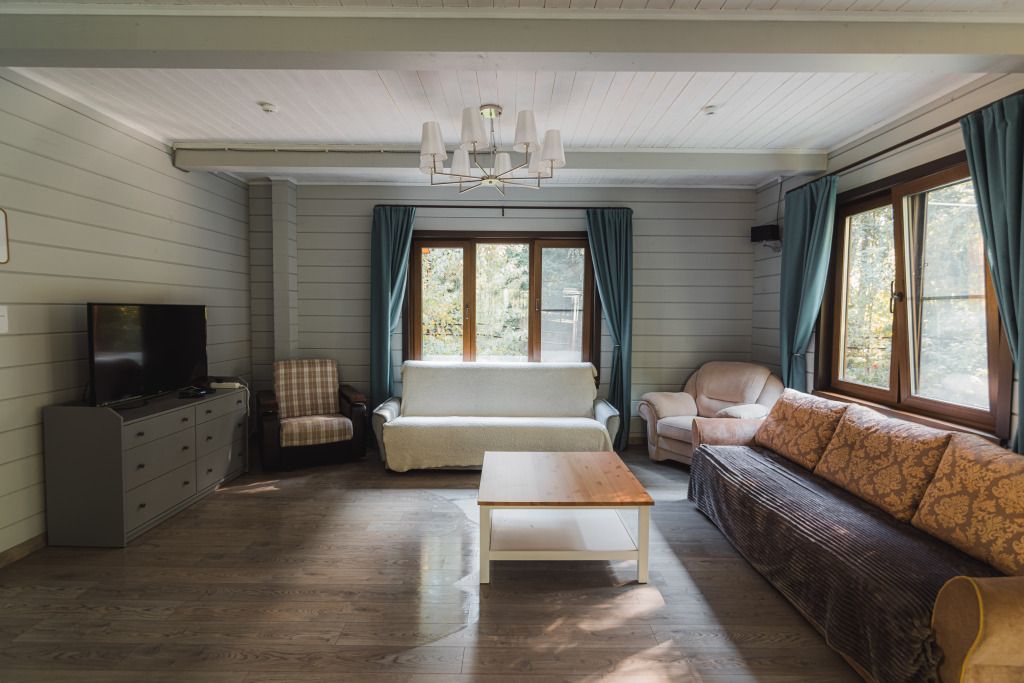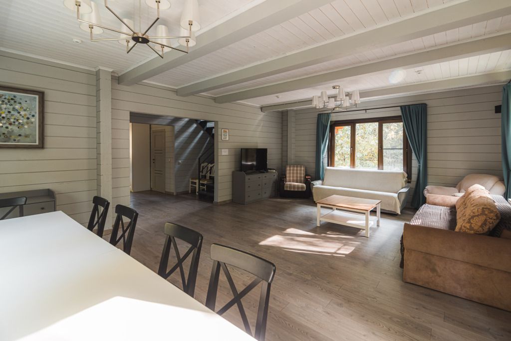 Короткий отпуск с друзьямиОстались очень довольны. Есть что вспомнить и рассказать.Отмечали юбилей. Сняли коттедж Купеческий. Остались очень довольны. В коттедже есть все необходимое. Нас было 18 человек вместе с детьми. Вокруг лес, даже белки по деревьям прыгают. А какие панорамные окна. В общем, не только веселились еще и красотами любовались.