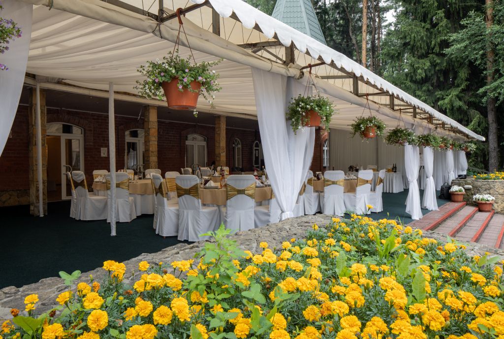 Возможно проведение свадеб, банкетов, корпоративов. Для этих целей в комплексе есть банкетный зал, веранда, вместительные беседки на берегу озера и крытый понтон на воде.