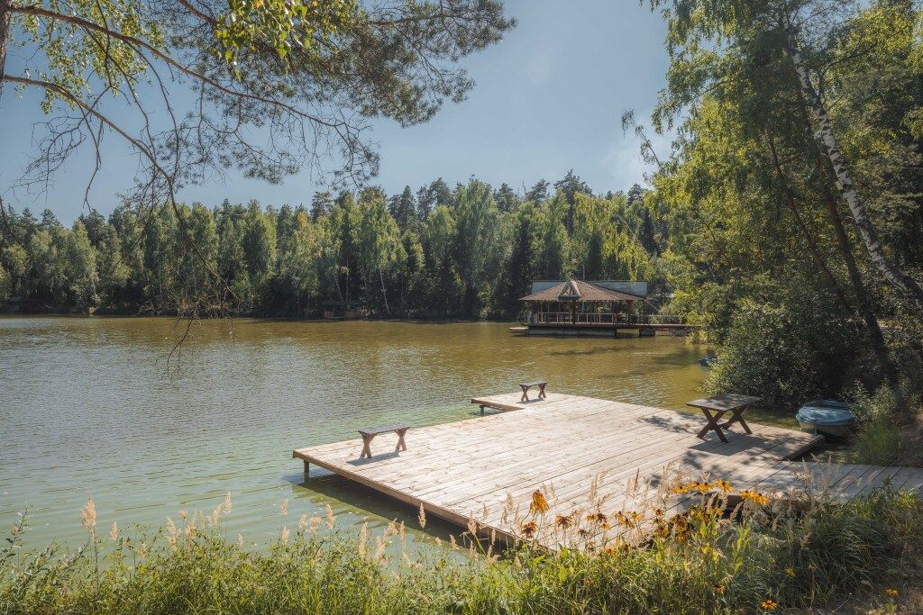 Среди услуг для красоты и здоровья — финская сауна с бассейном и дровяная баня с купелью. На территории есть детская площадка, беседки с мангальной зоной. Гости могут порыбачить и приготовить свой улов самостоятельно, либо доверить это поварам ресторана.