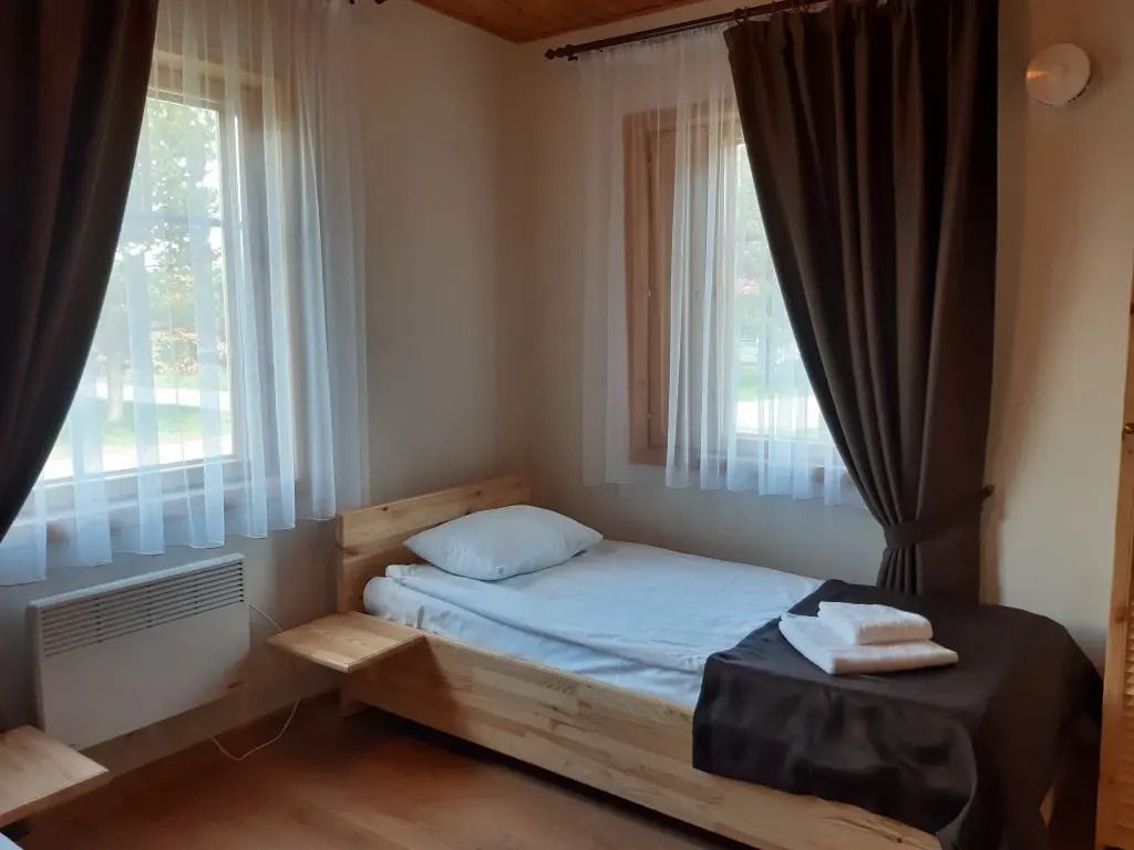 Второй этаж: холл, одна спальня с двумя односпальными кроватями. Есть 1 коттедж с двуспальной кроватью на 2-м этаже.