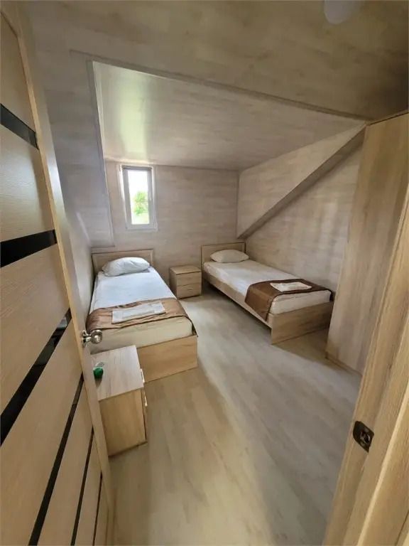 Второй этаж: две спальни с односпальными кроватями (по 2 кровати в каждой спальне), санузел.