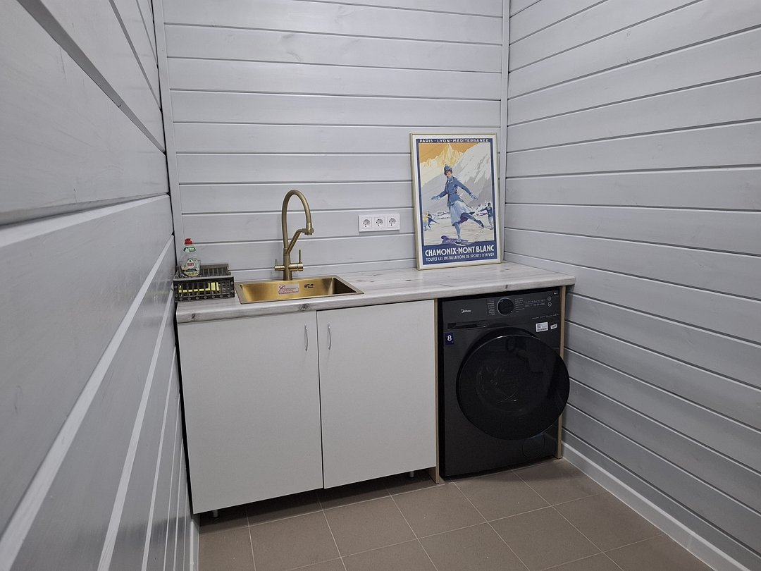 Первый этаж: Гостиная, спальня с 6 односпальными кроватями, 2 санузла, душевая, постирочная.