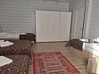 Двуспальнае кровать, диван, 2 кресла, прихожая, шифоньер, телевизор, стол, стулья, санузел, электрочайник, чайная посуда, кувшин и стаканы для воды, мини-холодильник, ковролиновое покрытие пола.
