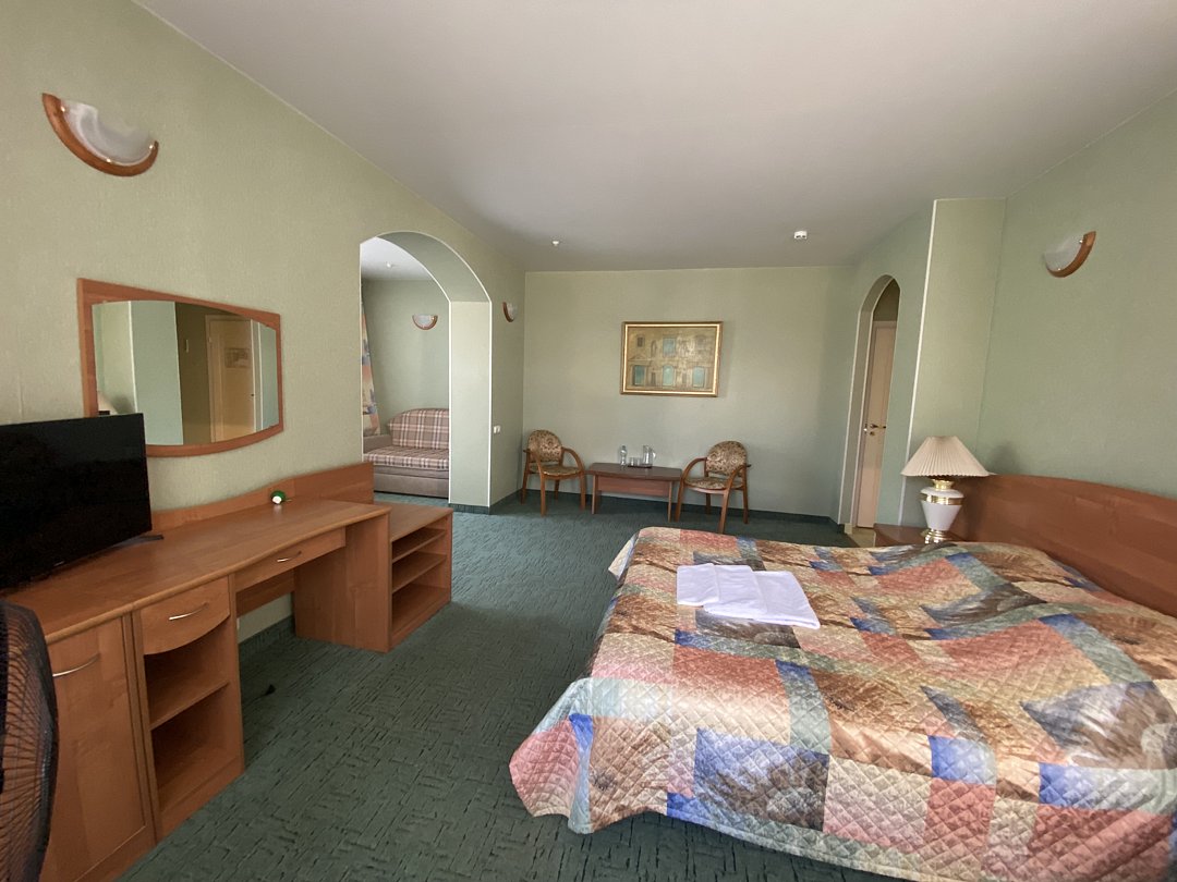 В номере имеется телевизор. Перечисленные услуги есть не во всех номерах.
