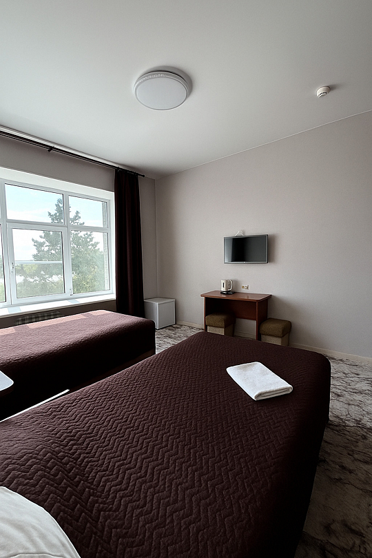 Номера оформлены в современном стиле, с продуманным комфортом: удобные кровати с качественным бельём, собственные ванные комнаты с душевыми кабинами, телевизор, холодильник и бесплатный Wi-Fi. Здесь созданы все условия для отдыха после насыщенного дня.