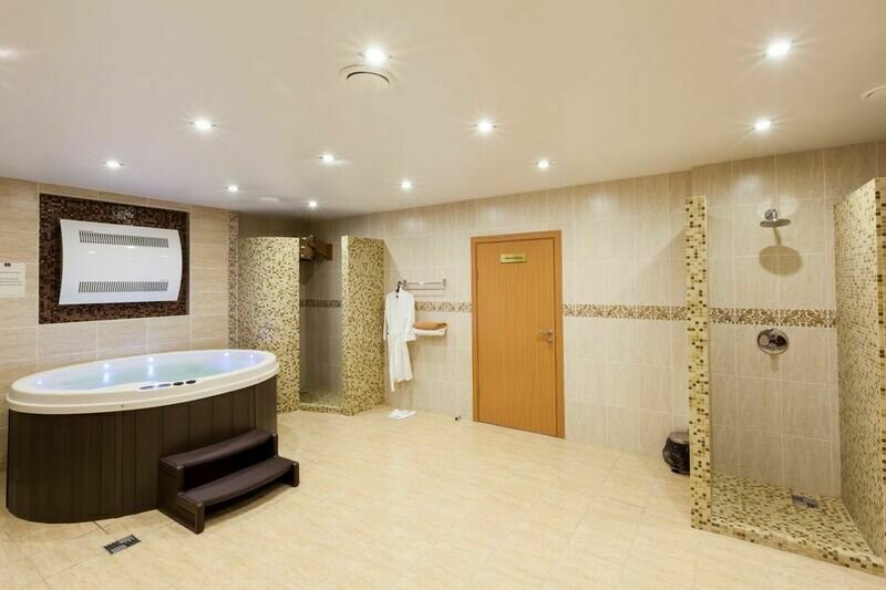 Тип бассейна: крытый бассейнРядом с бассейном: шезлонгиВремя работы: от 09:00 до 21:00Глубина (диапазон): от 80 до 200 смБольшой плавательный бассейн с панорамными окнами и гидромассажными чашами. Для вас функционирует взрослая и отдельная детская ванна (8х10 м) с элементами аквапарка.