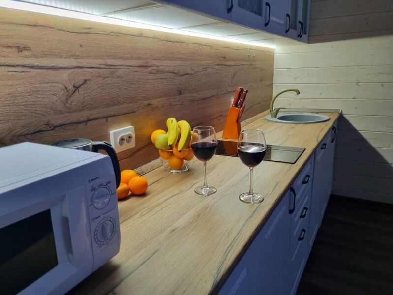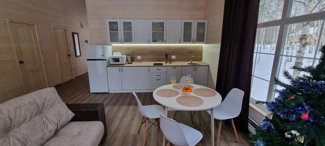 Уютный дом с двумя спальнями и гостиной-кухней. Дом оснащен до 6 гостей. Перед домом мангальная зона и Банный чан. В Доме сухая финская сауна.