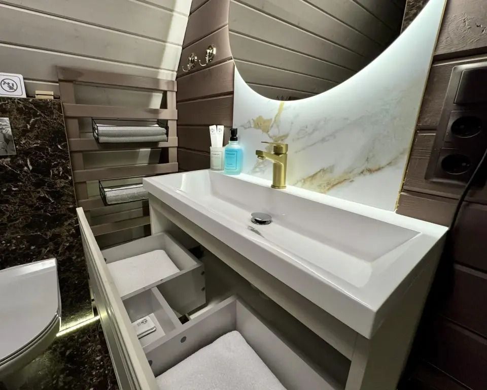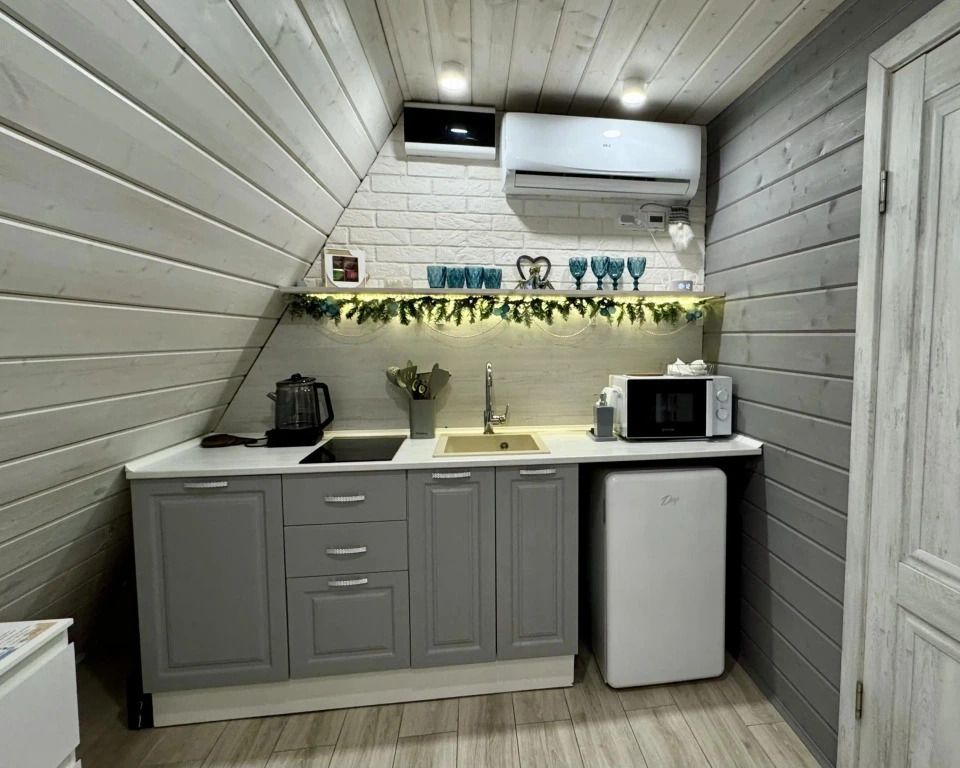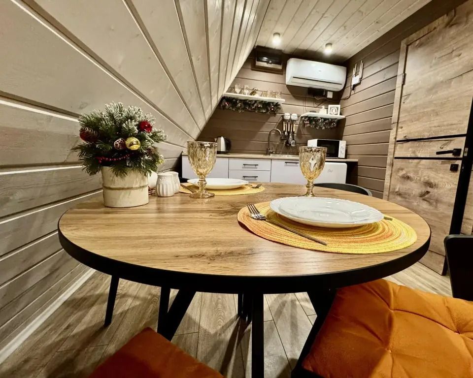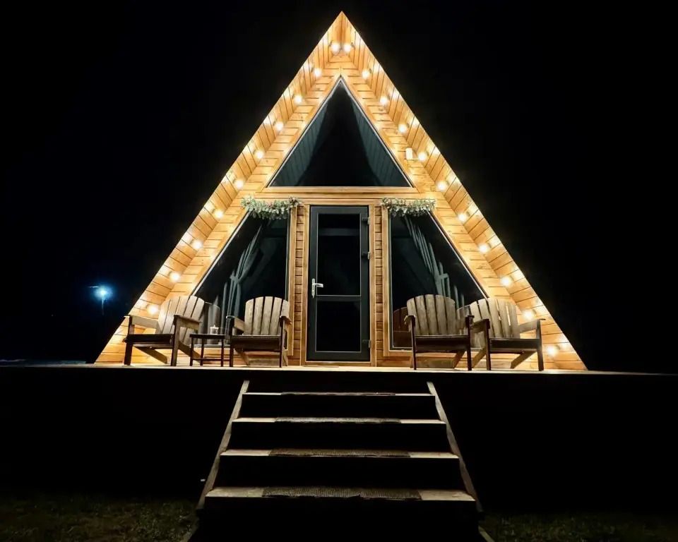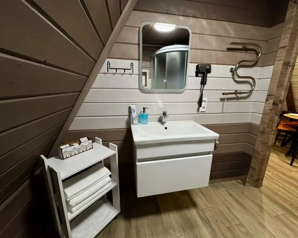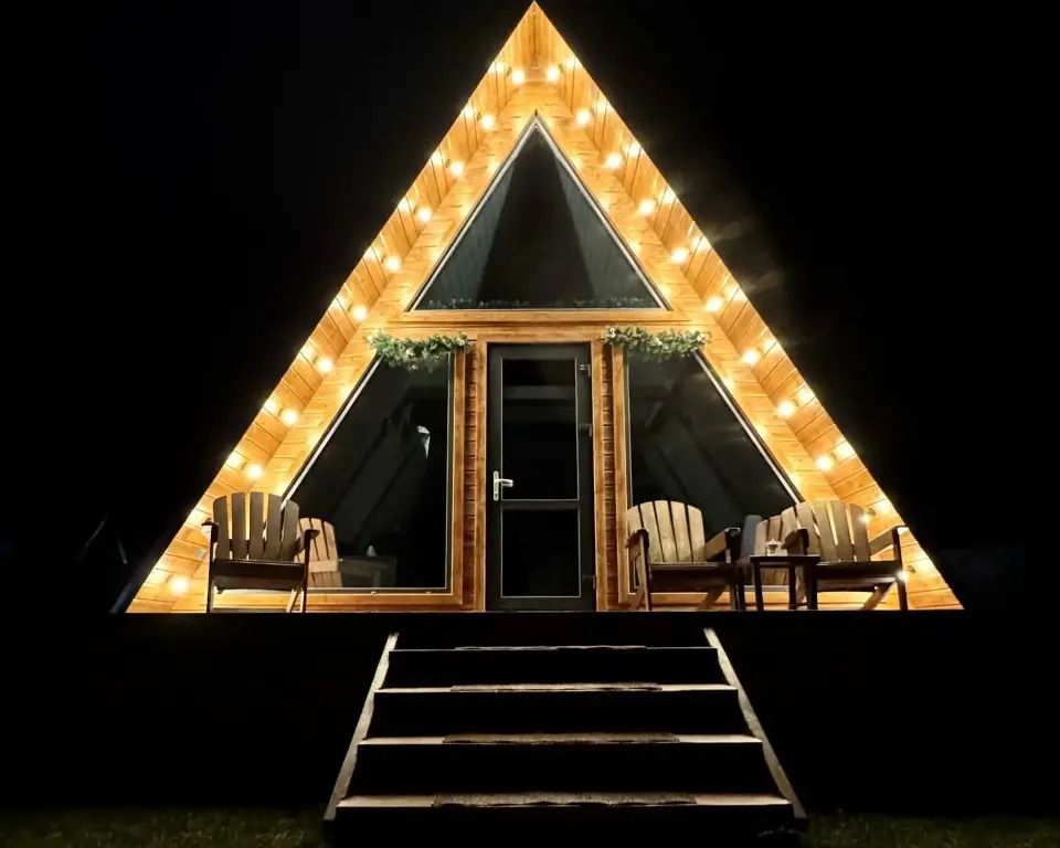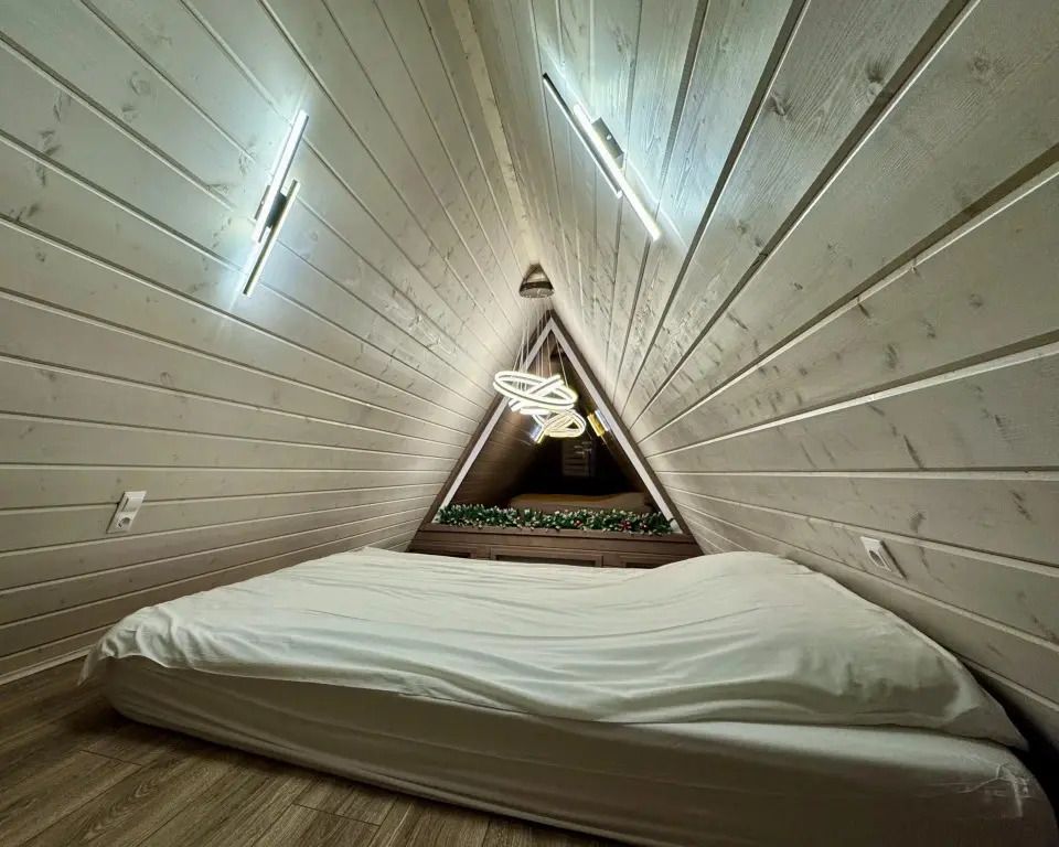 Для гостей подготовлены комфортабельные A-frame, каждый из которых расположен на собственной территории за забором, поэтому если вы давно мечтали об уединенном отдыхе, то это отличное место. Каждый домик оборудован всем необходимым для комфортного проживания. Спальные места представлены кроватью, дополнительно имеется диван. Ванная комната оснащена новой сантехникой, душевой кабиной и туалетными принадлежностями. Установлен кондиционер, в одних домиках есть телевизор, а в других — проектор. Работает Wi-Fi.