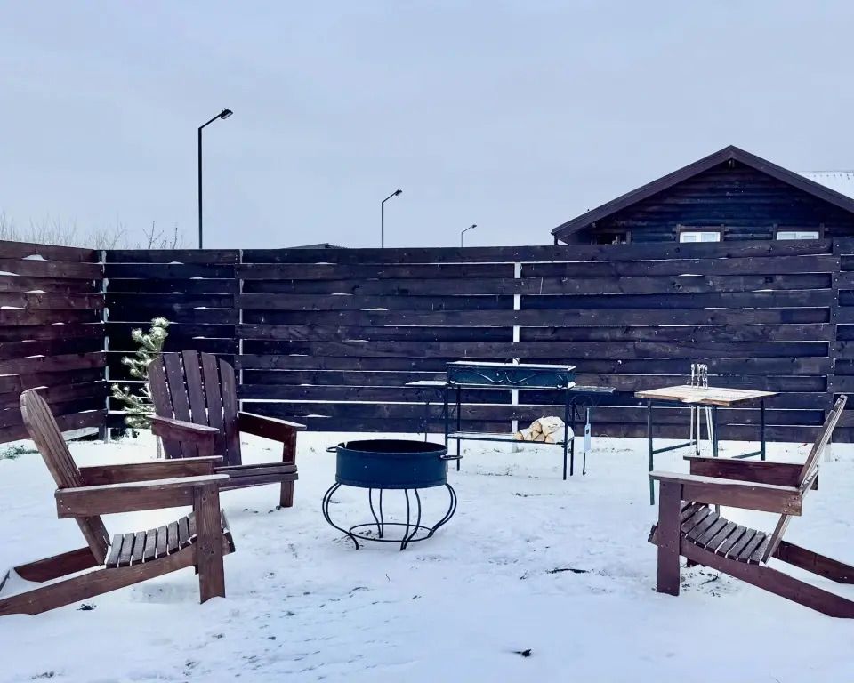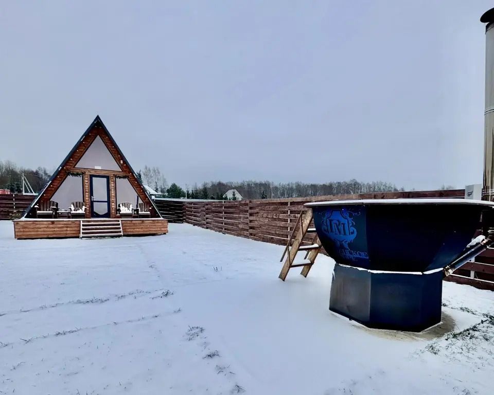 У каждого дома установлен банный чан, а проживающие в доме Aframe Luxe White смогут попариться в дровяной бане. Прямо за забором расположен длинный песчаный пляж, поэтому отдыхающим доступны развлечения на воде. В летнее время можно отдыхать и кататься на сапах, а в зимнее — рыбачить.