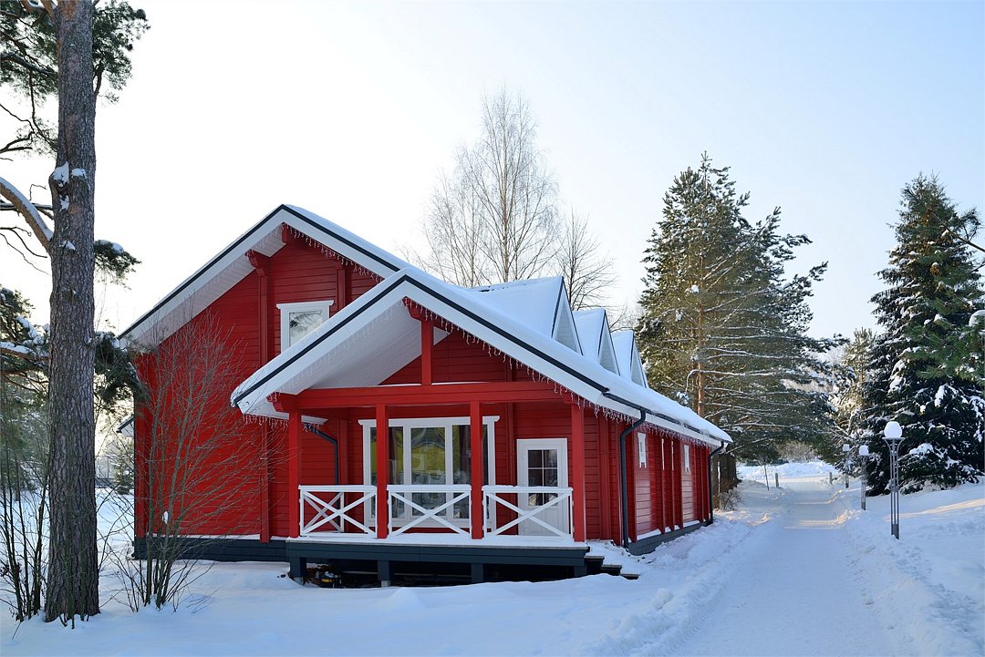 В коттедже: 4 основных места, 2 дополнительных места. Первый этаж: гостиная с камином, спальня с двумя односпальными кроватями, сауна, кухня - столовая, санузел, душ; Второй этаж: холл с мягкой мебелью, одна спальня с двумя односпальными кроватями. Есть 1 коттедж с двуспальной кроватью на 2-м этаже.Услуги и удобства