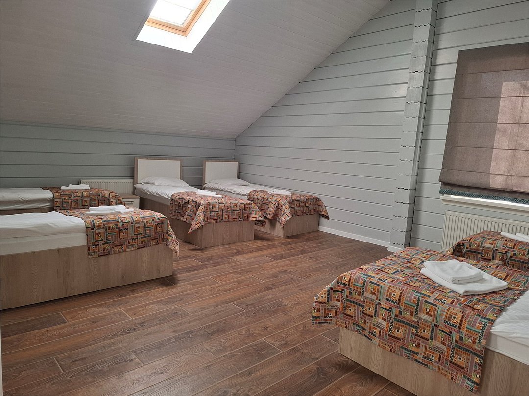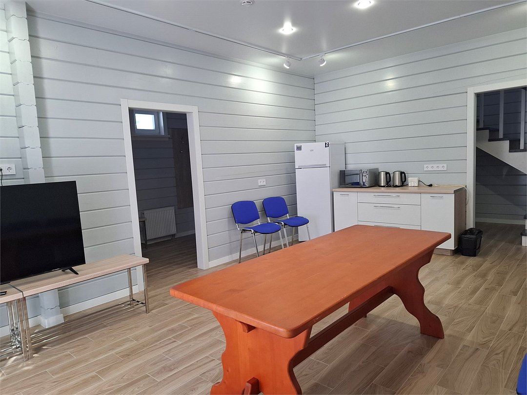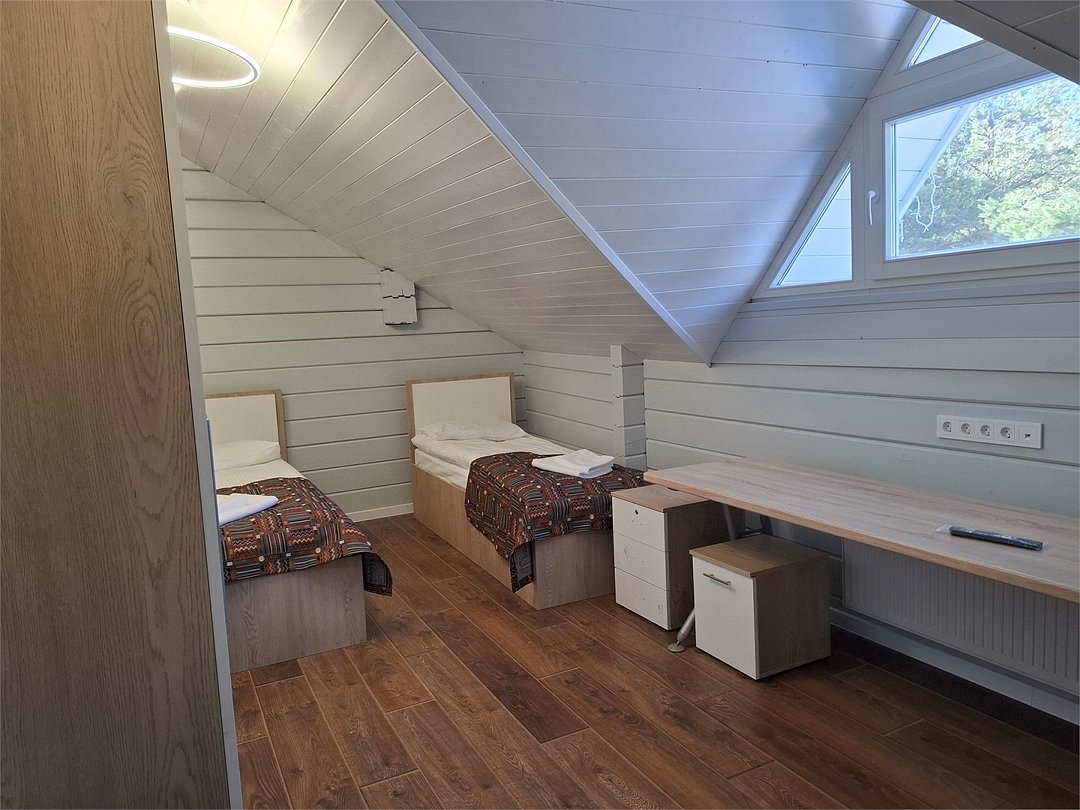 Большой коттедж для семейного праздника, корпоратива или отдыха с друзьями. Первый этаж: Гостиная, спальня с 6 односпальными кроватями, 2 санузла, душевая, постирочная. Второй этаж: спальня с 2 односпальными кроватями, телевизором и рабочим столом, спальня с 6 односпальными кроватями, 2 санузла.Услуги и удобства