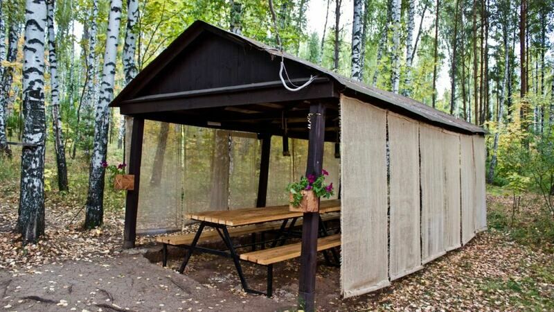 Беседка с уличной кухней лесничего дома (вместимость 18 человек/столы/скамейки/сервировка/обслуживание):