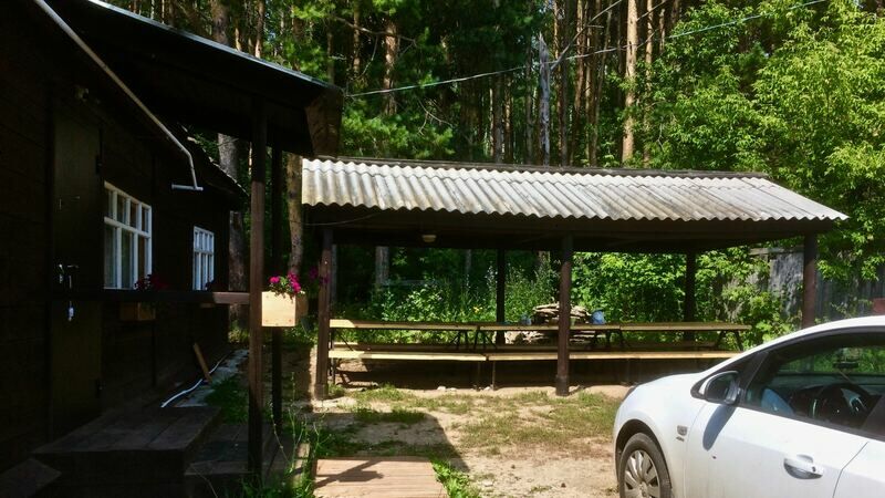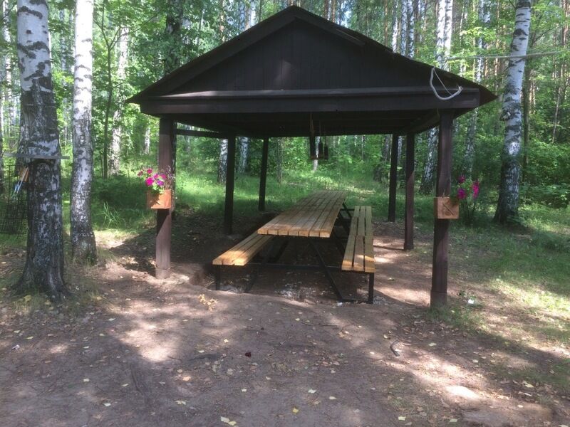 Беседка с уличной кухней лесничего дома (вместимость 18 человек/столы/скамейки/самообслуживание):