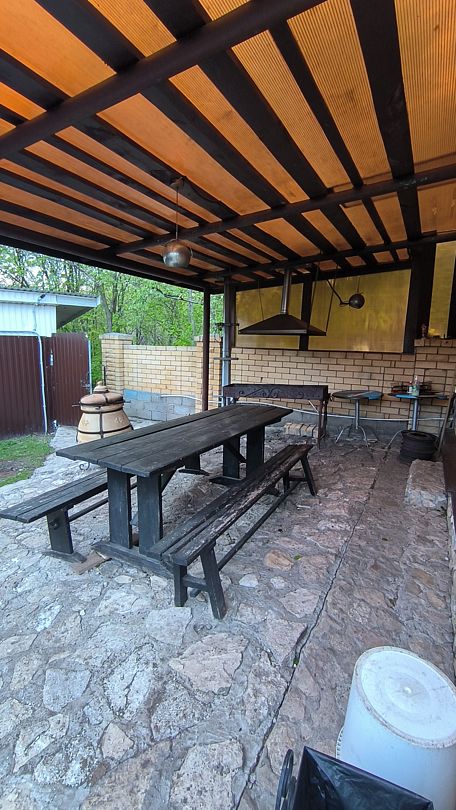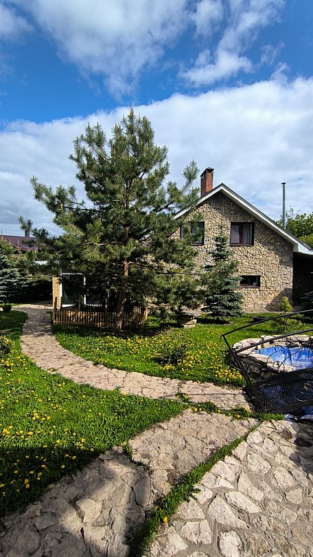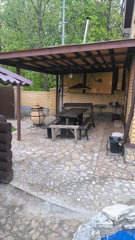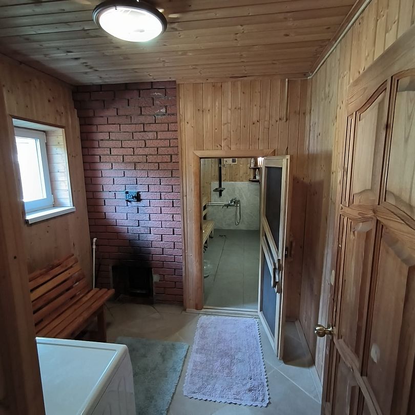 Русская баня расположена в 10 метрах. На территории уютная беседка с прудом, родник, мангал. В уютном и просторном холле камин с возможностью готовить шашлыки и еду на казане, газовая плита, микроволновка, чайник, большой холодильник, посуда, домашний кинотеатр, спутниковое HD ТВ. Дом хорошо подойдет для банкета на 30 человек. Площадь дома 250 кв. метров.