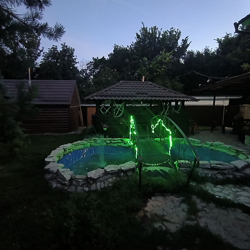 Тип бассейна: крытый бассейнРазмеры: 4.5 x 9 мПлощадь: 40.5 м²Глубина: 180 смЗакрытый бассейн с неоновой подсветкой расположен в сауне VIP дома.