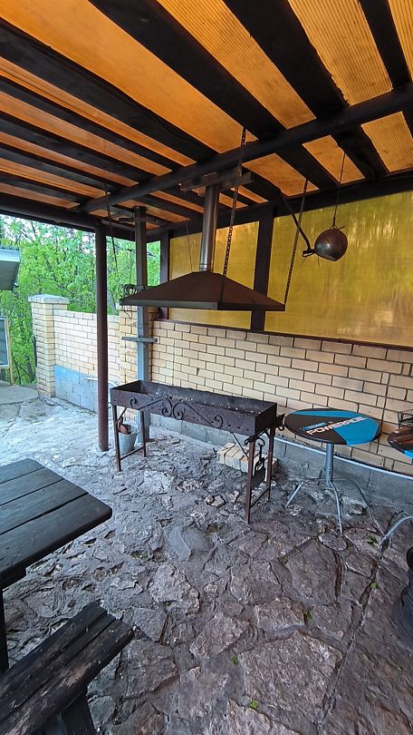 Эко Дом выполнен исключительно из природных материалов. На территории 2 шатра, 2 уличных стола, большой пруд где обитают более 150 разных рыб, мангал, казан для шурпы или плова, волейбольная площадка.