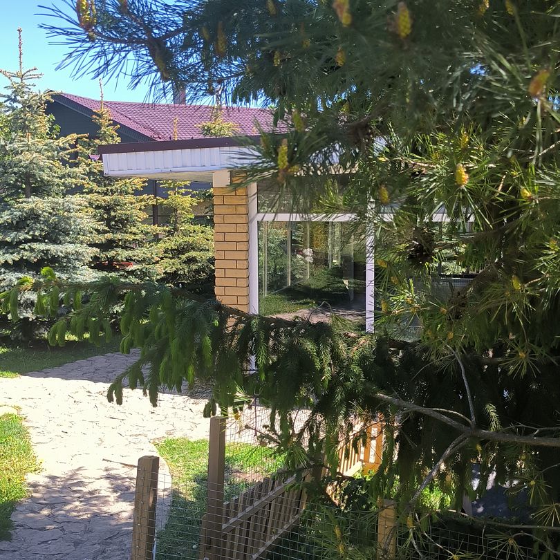 VIP Дом с бассейном и верандой с панорамным остеклением. Дом 350 квадратных метров, везде теплый пол, в доме бассейн с размером 9 на 4.5 метра, глубина 1.8 метра. На первом этаже уютный и просторный холл, столовая с панорамным остеклением и видом на лес, кухня со столовой, камин, плазма, спутниковое HD ТВ, микроволновка, плита газовая, посуда, чайник.