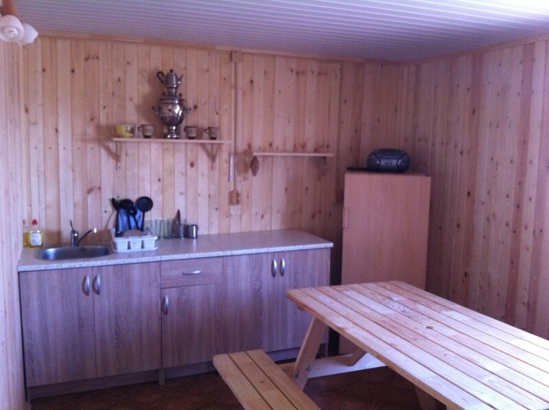 Один дом с 2 входами, в каждой половине дома могут разместиться по 5 человек. В каждой половине: туалет, душ, кухня-холодильник, микроволновая печь, электрическая плита. В спальне: двуспальная и односпальная кровати. В кухне-диван раскладной