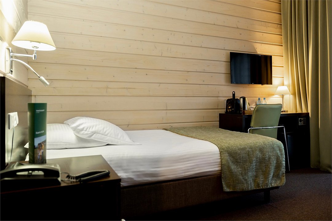 май 2023 г.Уединенное место для отдыха вдвоемОтличный отель, тихий, уютный, красивая территория и домики с номерами. Чувствуется единение с природой, отдыхаешь от городской суеты. Имейте в виду, что ресторан находится в 10 минутах пешком через лесную тропу, либо две минуты на машине надо проехать работает до 21:00 (алкоголь фри), утром завтрак там же. Завтрак очень хороший! Как ресторан работают в формате столовой-шведского стола. Персонал приветливый в отеле. Зона ресепшн-лаунж зона - невзрачная и не уютная, здесь вот можно было доработать: просто столы и стулья обычные. Не располагает посидеть, пообщаться. Есть игры настольные. Наверное, здесь все же формат провести время вечером в номере или на природе, нежели в лобби. В целом отличное место для выходных!