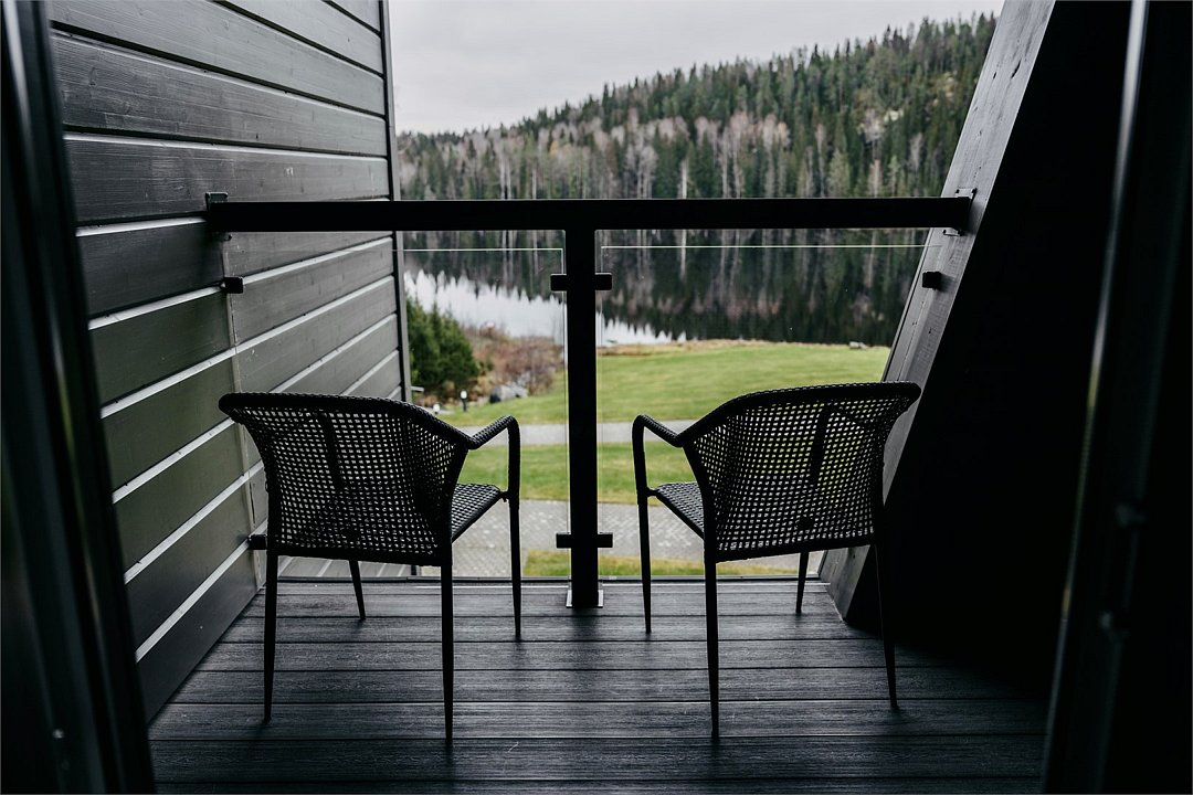 Все номера имеют панорамные окна с балконом: открывающимся с него живописным видом на озеро можно любоваться часами — удобные кресла с кофейным столиком поспособствуют такому виду отдыха. Во всех номерах первого этажа предусмотрен отдельный вход с собственной террасы, также смотрящей на озеро.