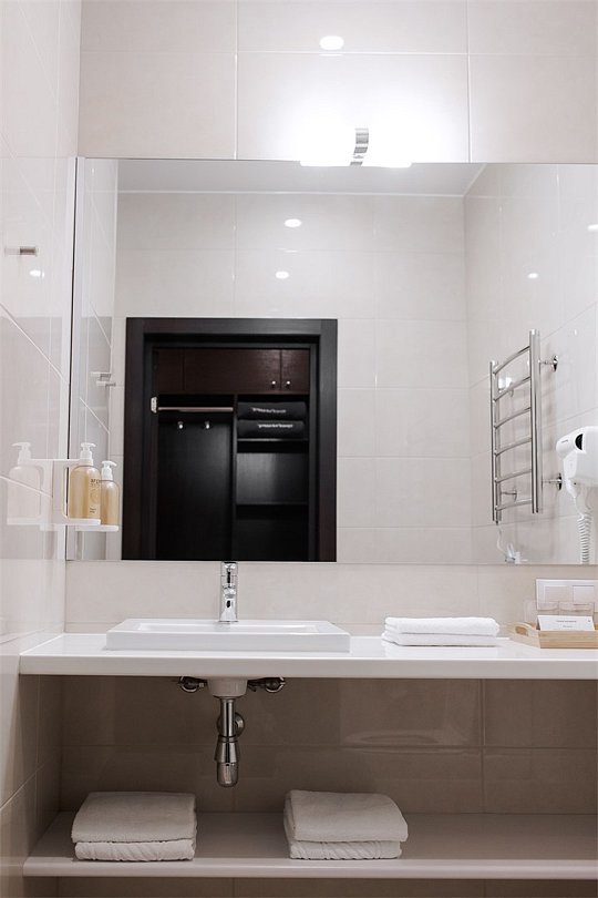 В каждом номере вы найдете все современные удобства. Никакого намека на роскошь, только то, что нужно для действительно комфортного проживания: удобная мебель, две односпальные кровати, просторная ванная комната с душевой кабиной, полотенцами и феном, телевизор, персональный сейф.