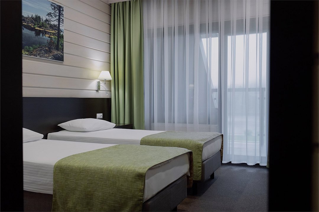 Отель состоит из трех двухэтажных гостиничных комплексов, расположенных на берегу озера Пюяралампи. Из каждого номера открывается захватывающий вид на озеро и лес. На первом этаже есть терраса с удобными креслами, а на втором — балконы, которые идеально подходят для проведения русских вечеров на свежем воздухе.