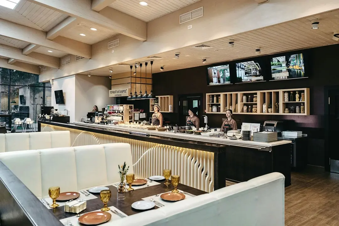 Кафе-бистро «Точка на карте. Сортавала» расположено всего в 700 метрах от отеля, и добраться до него можно по живописной лесной экотропе. Это уютное заведение вмещает до 90 человек и предлагает разнообразные кулинарные изыски: от завтраков в формате «шведского стола» с неограниченным доступом к деликатесам до сытных обедов и ужинов.
