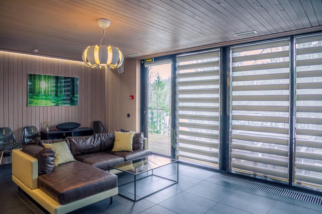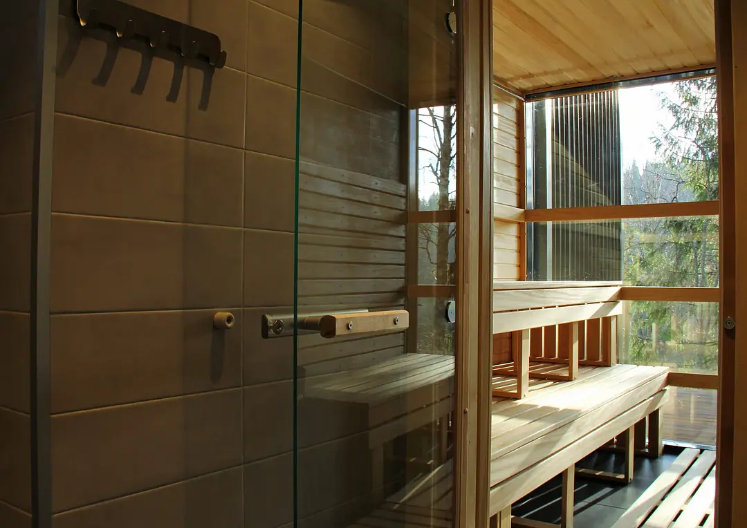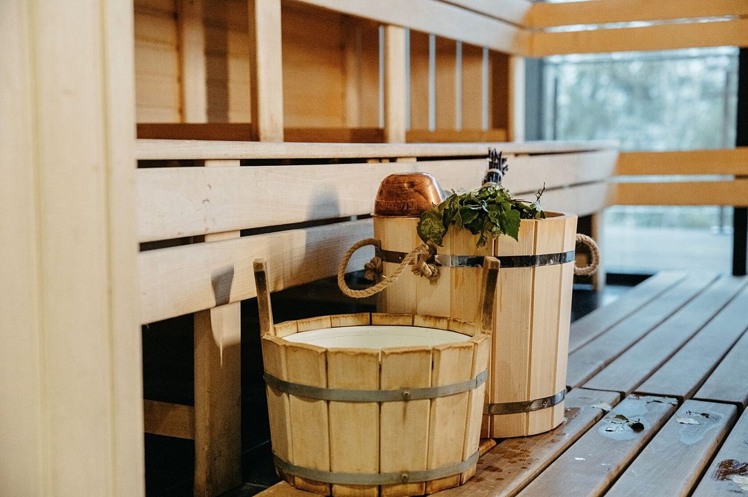 Читать полностьюВ панорамной сауне, рассчитанной на одновременное посещение до четырех человек, вы сможете насладиться парными процедурами с видом на озеро, провести время в комнате отдыха и освежиться под душем. После сеанса вы сможете выйти на террасу, где вас будет ждать уличная мебель, и насладиться свежим воздухом.