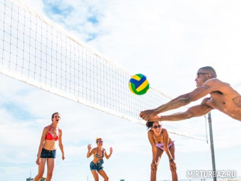 На территории есть пляж, где вы можете поиграть в волейбол или футбол.