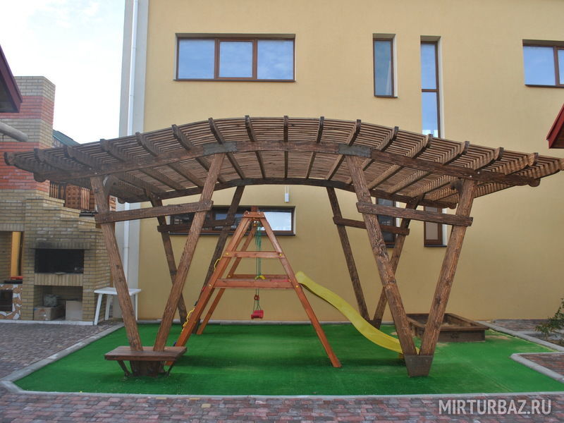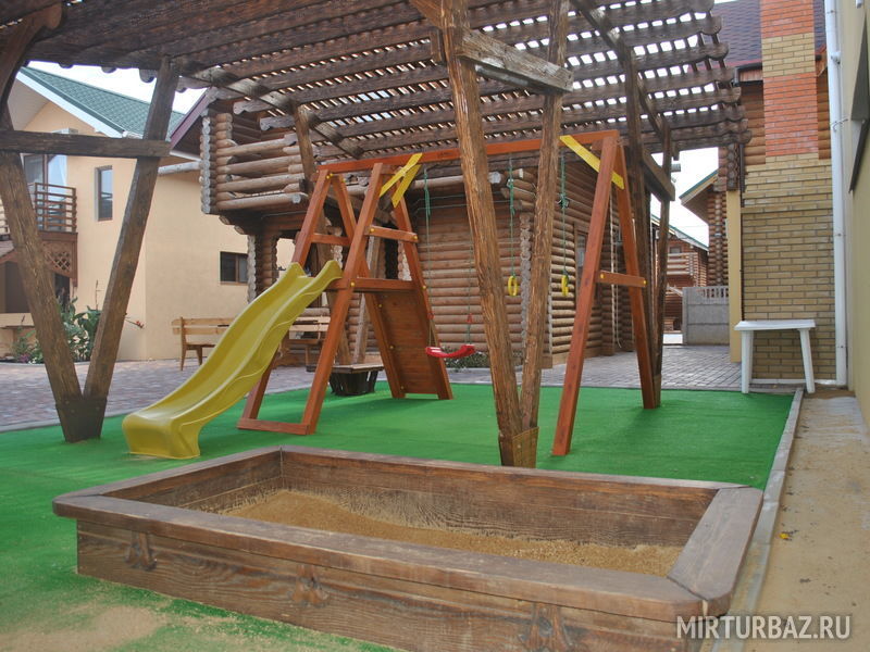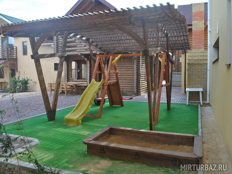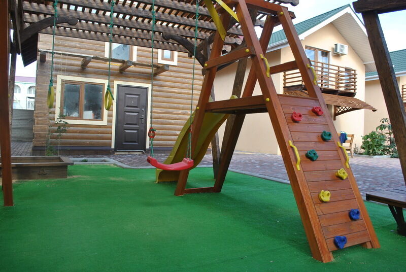 Каждый из 20-ти домиков базы отдыха располагает оборудованной прилегающей территорией с парковочным местом и беседкой, доступна отдыхающим и оборудованная общая территория. Здесь есть и игровые площадки для детей, и просторная зона отдыха с мангалом, а еще на территории базы отдыха работает прекрасная сауна. Лучшие базы отдыха города Саки примечательны еще и тем, что находятся в непосредственной близости от самой известной грязелечебницы Крыма. Каждый день отдыхающие смогут проводить время на берегу знаменитого Сакского озера, которое славится своей лечебной иловой грязью и рапой.